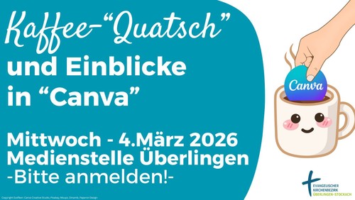 Herzliche Einladung zum 1.Kaffee -"Quatsch" der Medienstelle Überlingen - mit kreativen Einblicken in das Online-Layout Programm "Canva"